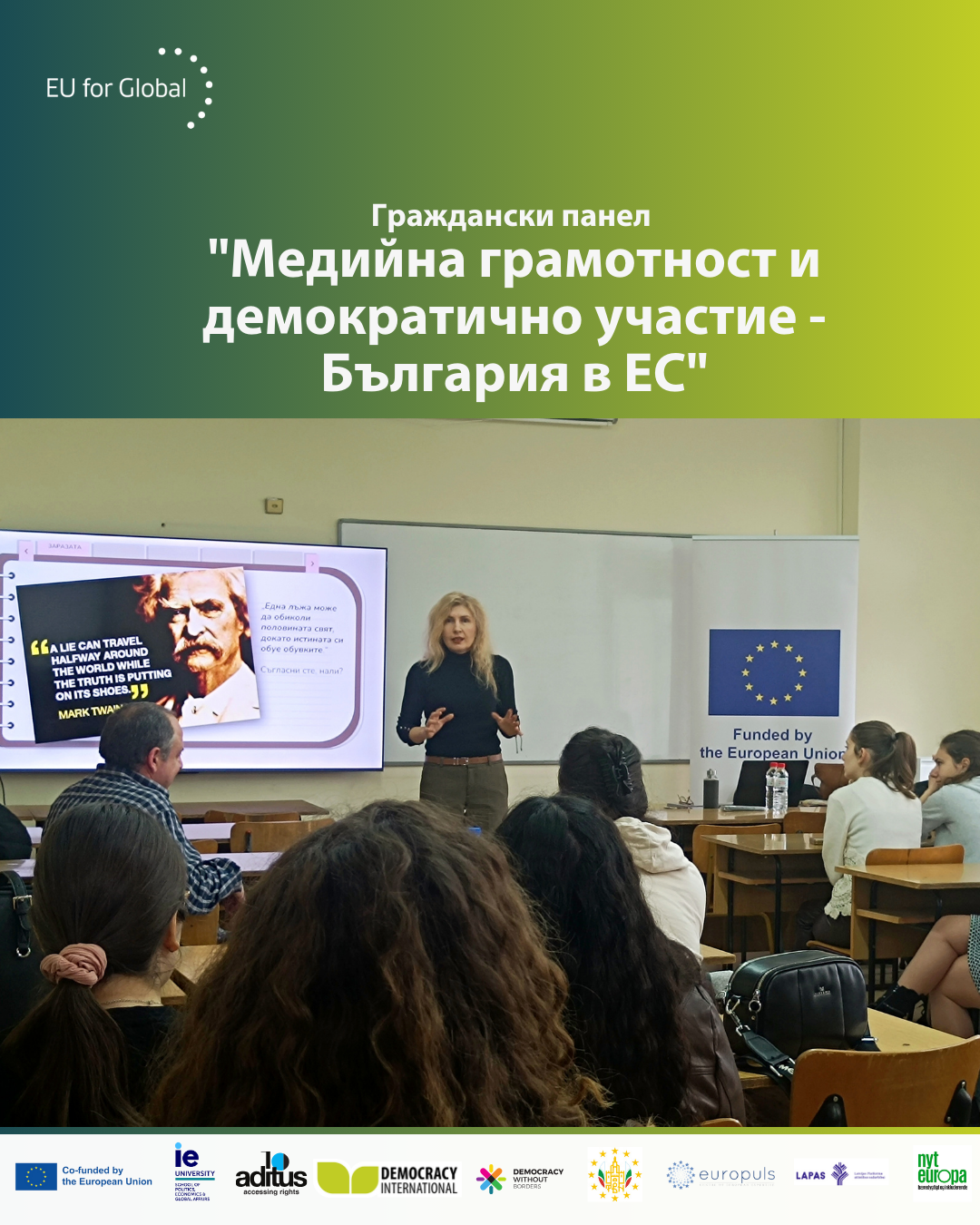 В рамките на проведения граждански панел участниците се обединиха около една от най-значимите теми на нашето време — дезинформацията и фалшивите новини и тяхното влияние върху демократичното участие и доверието в обществените процеси.